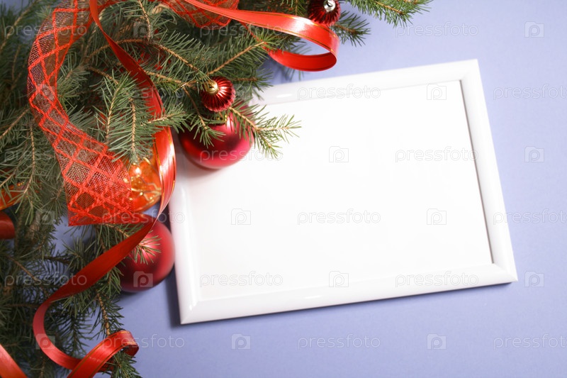 Пустая белая рамка и новогодние украшения