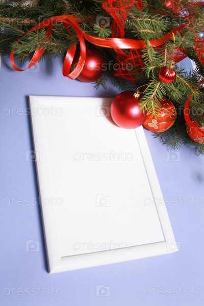 Пустая рамка и новогодние украшения
