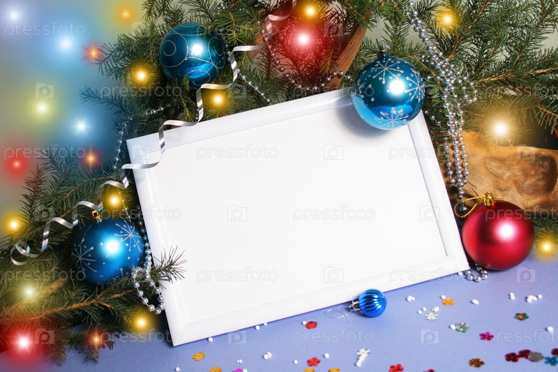 Пустая рамка и новогодние украшения