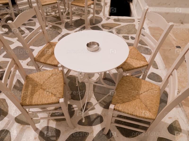 Пустой стол и стулья на острове Миконос