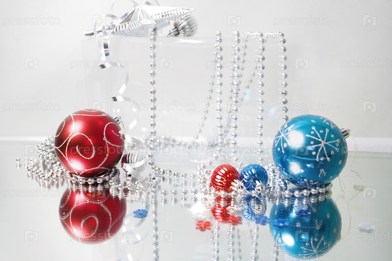 Новогодние шары и бусы на зеркальной поверхности