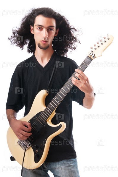 Гитарист на белом фоне