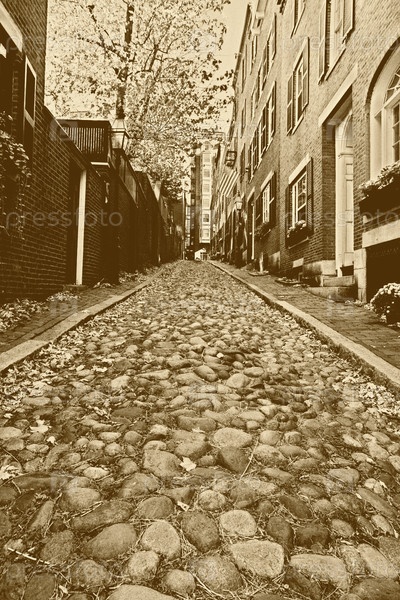 Здания вдоль булыжной мостовой