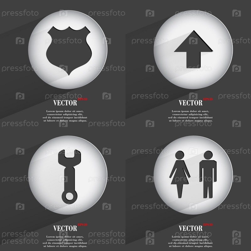 Набор кнопок, модные. Значки с длинной тенью. Вектор