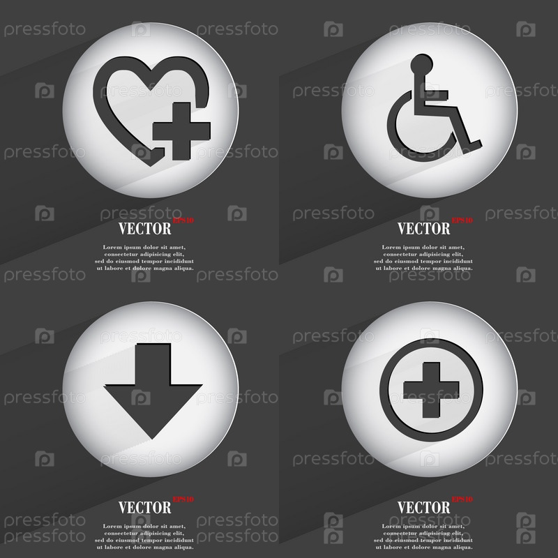 Набор кнопок, модные. Значки с длинной тенью. Вектор