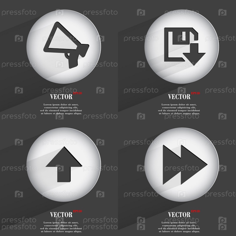 Набор кнопок, модные. Значки с длинной тенью. Вектор