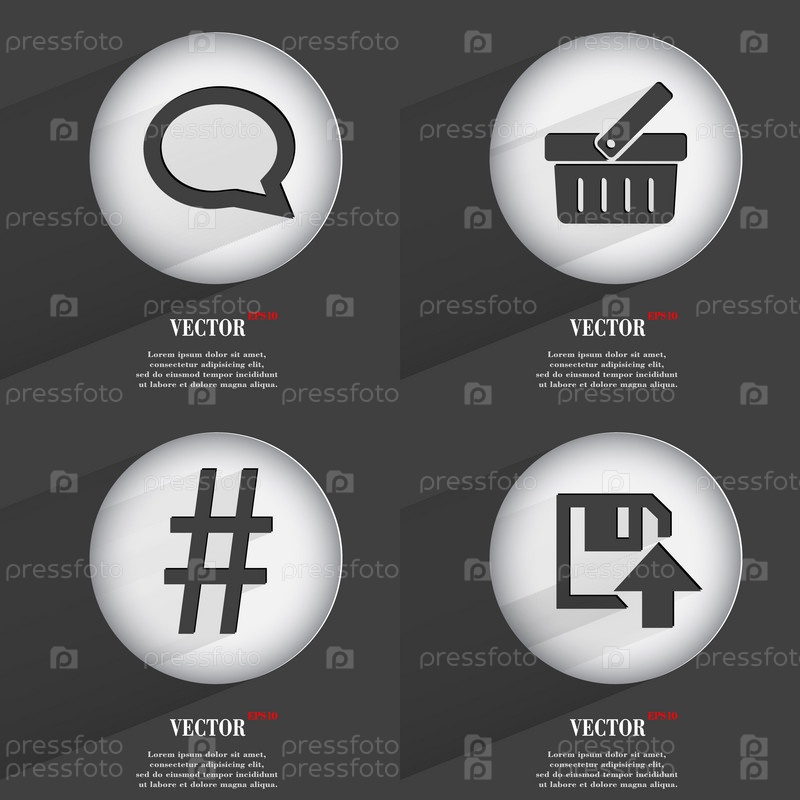 Набор кнопок, модные. Значки с длинной тенью. Вектор