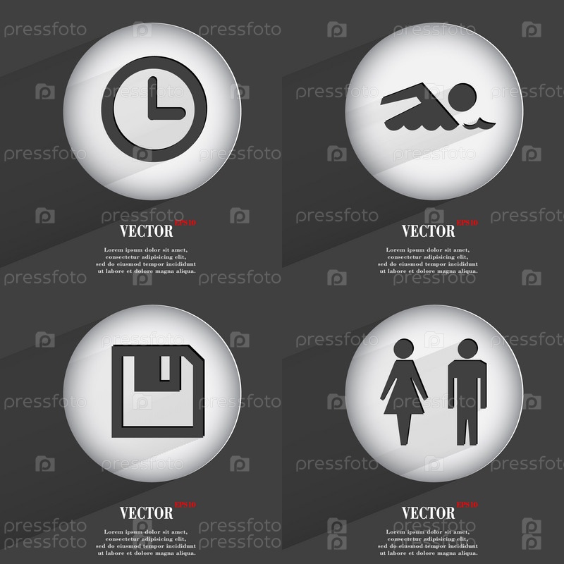 Набор кнопок, модные. Значки с длинной тенью. Вектор
