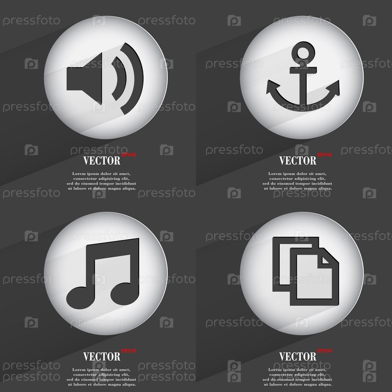Набор кнопок, модные. Значки с длинной тенью. Вектор