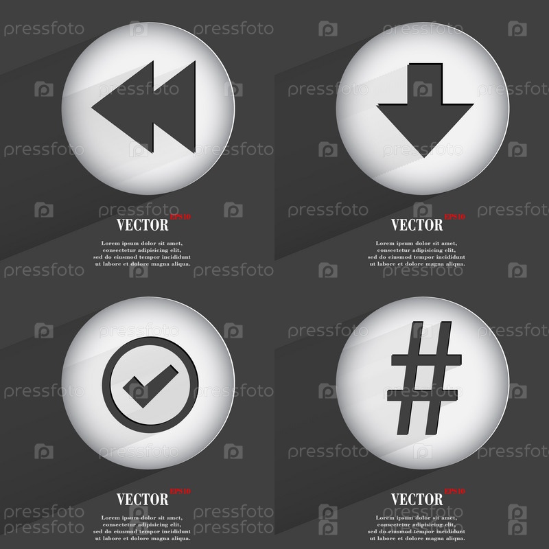 Набор кнопок, модные. Значки с длинной тенью. Вектор