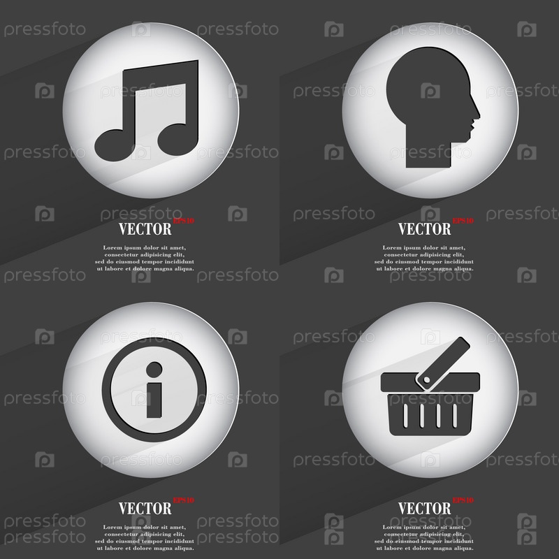 Набор кнопок, модные. Значки с длинной тенью. Вектор