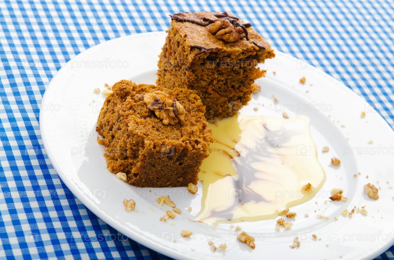 Торт с грецкими орехами на тарелке