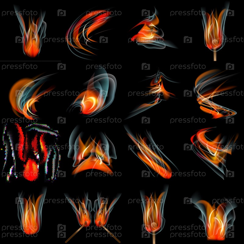 Набор различных форм пламени на черном фоне