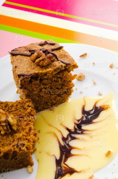 Торт с грецкими орехами на тарелке