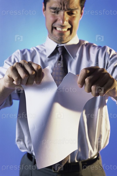Бизнесмен разрывают лист бумаги