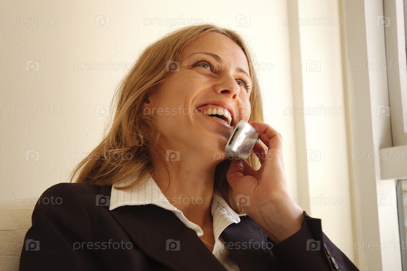 Счастливая женщина на телефоне