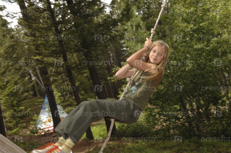 Девушка качается на качелях