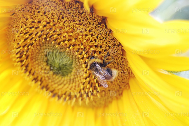 Шмель сидит на подсолнечник