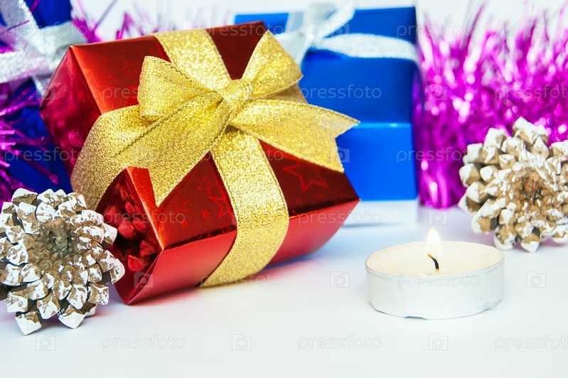 Натюрморт с шишками и подарочные коробки