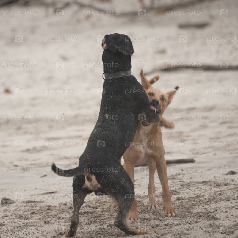 Две собаки, бои на пляже в Коста-Рике