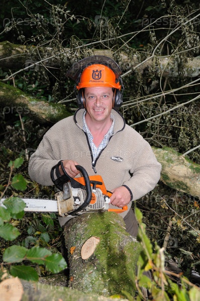 Человек с бензопилой, вырубки деревьев