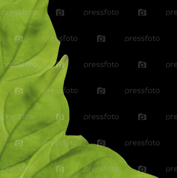 Зеленый лист на черном фоне