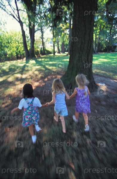 Три девочки в лесу, взявшись за руки