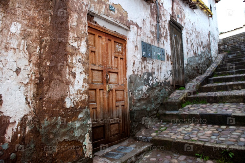 Дома вдоль ступенчатыми дорожки, Куско, Перу