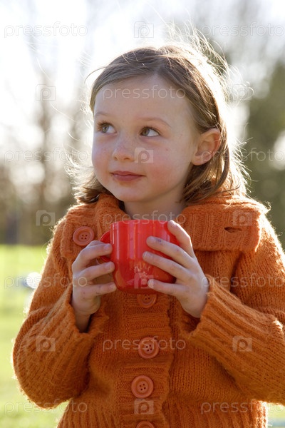 Девочка держит чашку кофе