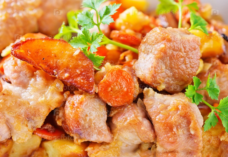 Жаренное мясо с овощами