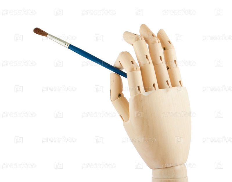 Кисточка в руке на белом фоне
