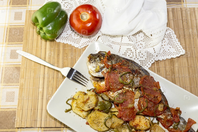 Тушеный морской карась на тарелке
