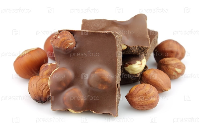 Шоколад с лесными орехами изолирован на белом фоне