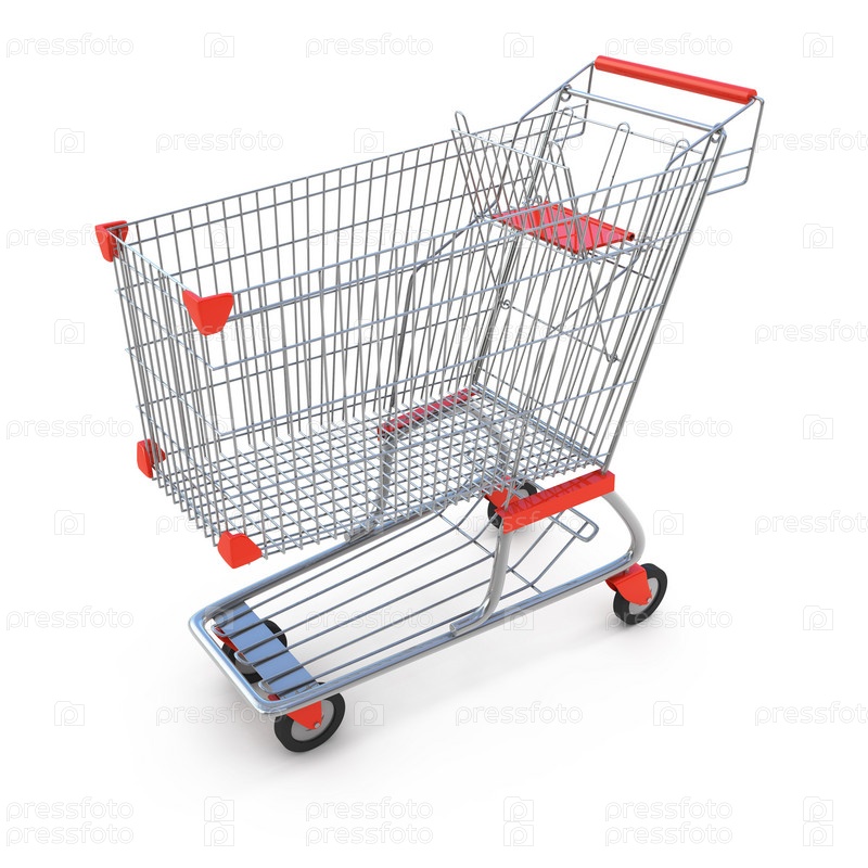 Пустая тележка для покупок на белом фоне