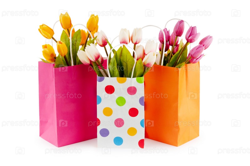 Тюльпаны в пакетах, изолированы на белом