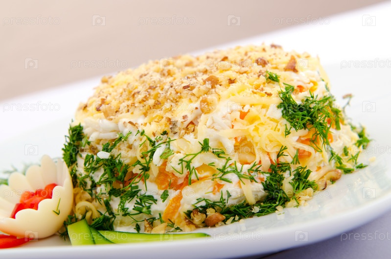 Русский салат на тарелке