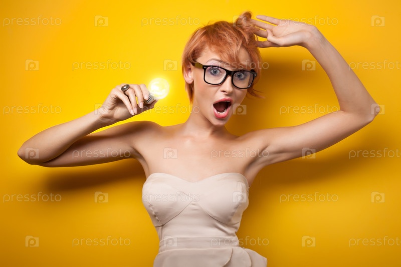 Женщина позирует с лампочкой