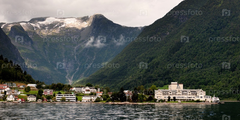 Здания на берегу фьорда, Балестранд, Согне-фьорд, Норвегия