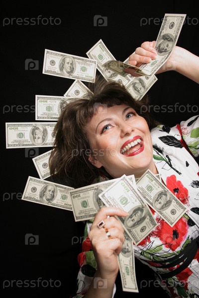 Радостная женщина с долларами