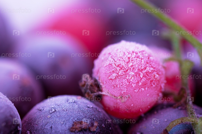 Замороженные ягоды крупным планом: черная и красная смородина, черника