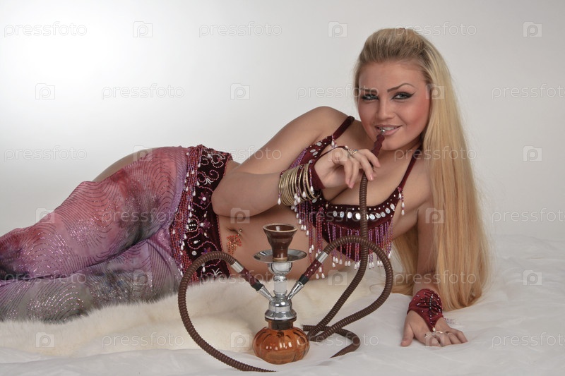 Девушка в восточной одежде курит кальян