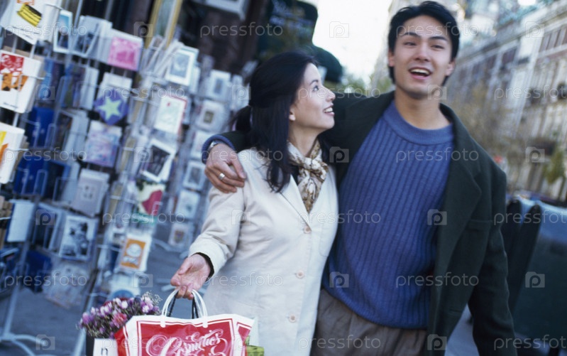 Портрет пары, прогуливаясь по улице