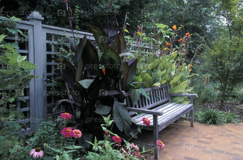 Деревянная скамейка в саду
