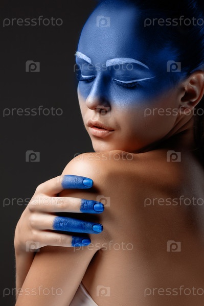Портрет женщины с синей краской