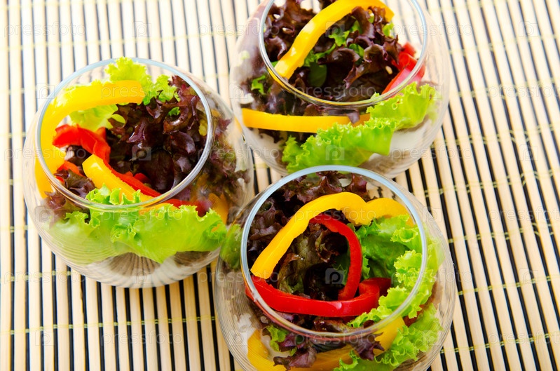 Три чаши со свежим салатом