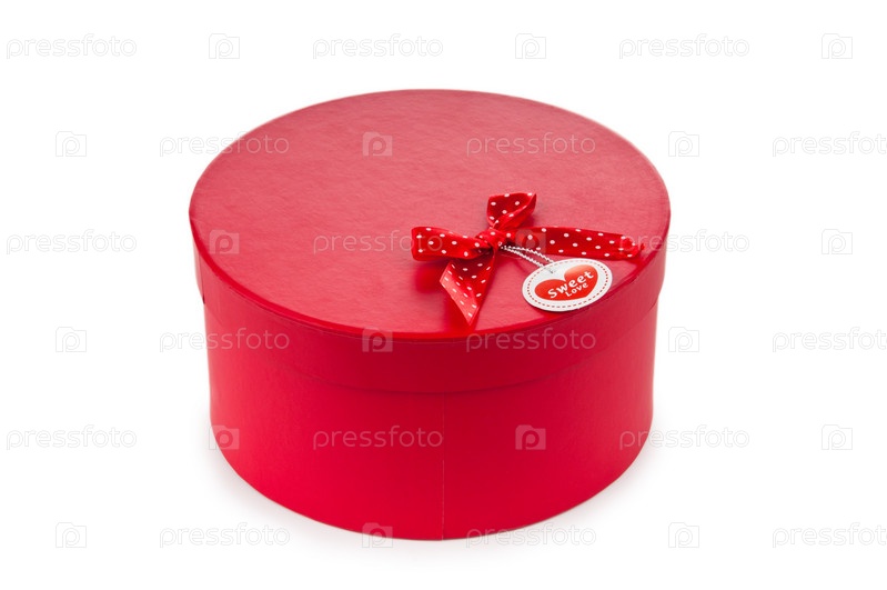 Красная подарочная коробочка на белом фоне
