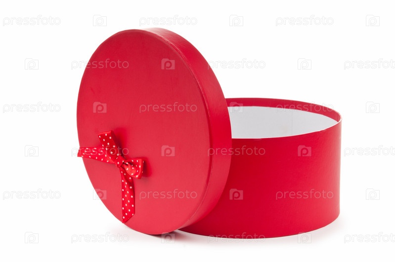 Красная подарочная коробочка на белом фоне