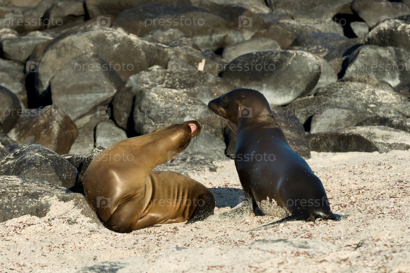 Морские львы на пляже Пунта Суарес, остров Эспаньола, Галапагосские острова, Эквадор