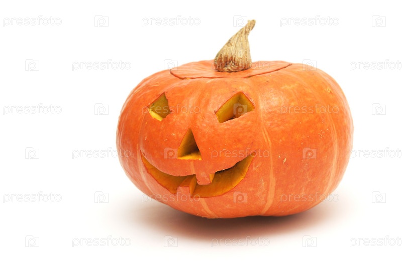 Тыква, вырезанная для Хэллоуина, изолирована на белом фоне