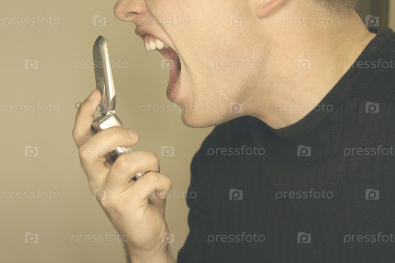Человек кричать на сотовый телефон